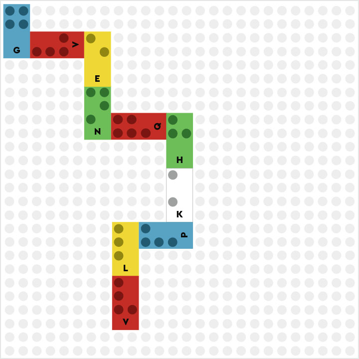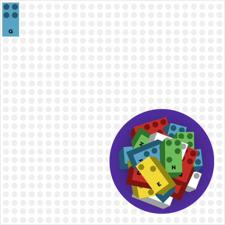 L’enfant ( ou un autre joueur) compte les picots de la dernière brique, et reprend le même nombre de briques dans la boîte, etc, jusqu’à ce que le serpent serpente sur toute la plaque.